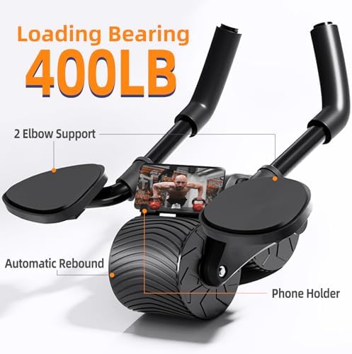 Ab Wheel Roller with Elbow Support, Automatic Rebound Abdominal Wheel, Ab Wheel Roller for Core Workout, Smartsaker Ab Wheel Roller with Phone Holder, Coreflex 4d Ab Wheel Roller for Office, Home, Outdoor