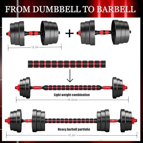 Adjustable Dumbbell Set, 44lbs Free Weights Dumbbells, 3 in1 Weight Set,Dumbbell, Barbell, Push-up, Home Gym Fitness Workout Equipment for Men Women