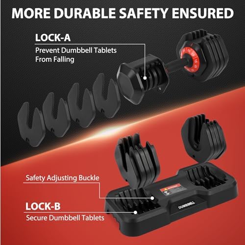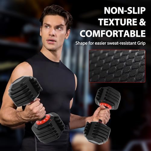 💪High Quality & New Technology : Weight plates are made entirely of silicon steel with an ergonomic anti-slip handle of aluminum alloy. It is combined with a clicking sound when adjusting weight making dumbbells more durable, reliable, and safer during use.