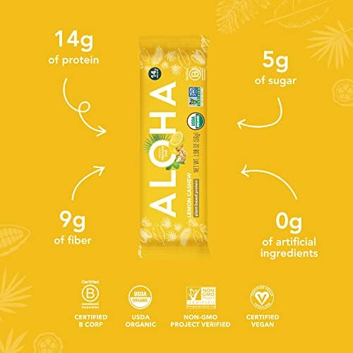 ALOHA Organic Plant Based Protein Bars – Lemon Cashew – 12-Count – Vegan, Low Sugar, Gluten-Free, Paleo, Low Carb, Non-GMO, No Stevia & No Erythritol