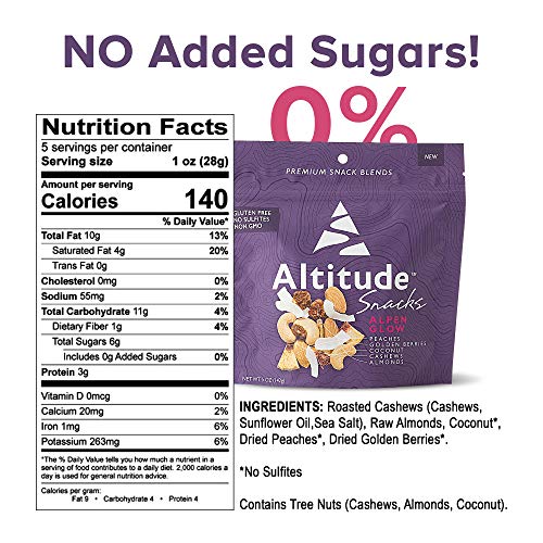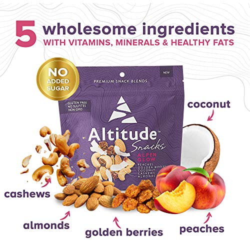 Great-tasting, Low Carb Snacks – Treat yourself to the satisfying goodness of Alpen Glow. It’s an exciting and delicious blend of diced peaches, dried coconut, sea salt roasted cashews, tart golden berries, and raw almonds.