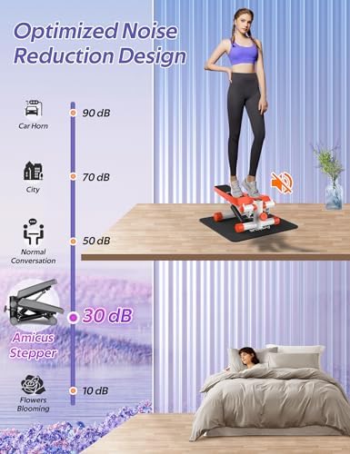 【Resistance Bands & Floor Mat】The durable resistance bands that enable you to engage your upper body muscles while stepping. This comprehensive workout targets multiple muscle groups for a full-body sculpting effect. The bottom of the stepper adds anti slip and protective silicone, which can enhance the anti slip effect while protecting the floor. On some wooden floors, we suggest that you use the felt mat equipped with Amicus to prevent the wooden floor from being left with indentation.