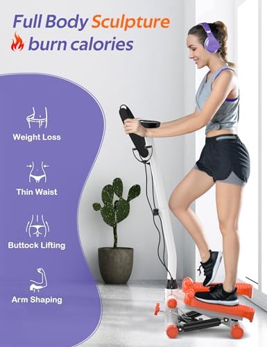 Amicus Mini Stepper with Handlebar, Stair Stepper with Resistance Band, Hydraulic Fitness Stepper Exercise Machine for Home, 330lbs Weight Capacity, Orange White