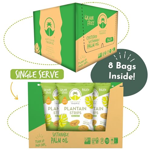 ARTISAN TROPIC Plantain Strips – Vegan, Paleo, Gluten Free Chips – Individual Bags Healthy Snacks for School, Gym, Kids – Whole 30 Approved Foods Baked Banana Chips – Sea Salt (2 Oz – 8 Pack)
