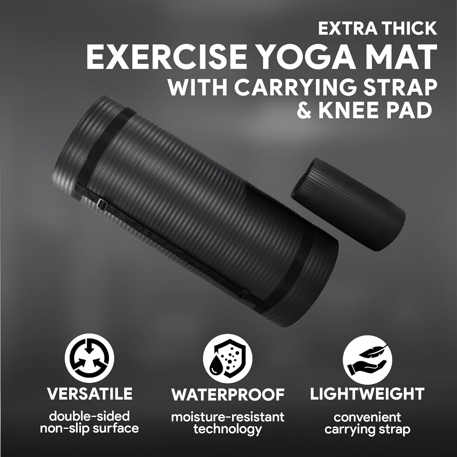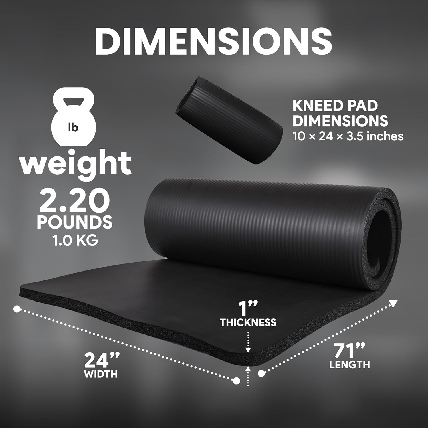 BalanceFrom 71 x 24 x 1′” All-Purpose Extra Thick Non-Slip High Density Anti-Tear Exercise Yoga Mat with Knee Pad & Carrying Strap, Black