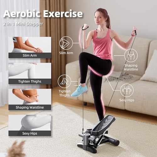 Capon Stair Stepper for Exercises, Portable Mini Steppers with Resistance Band & Non-Slip Mat, 330LB Weight Capacity and LCD Calories Display, Aerobic Fitness Stepper Machine for Home Office Workout (Renewed)