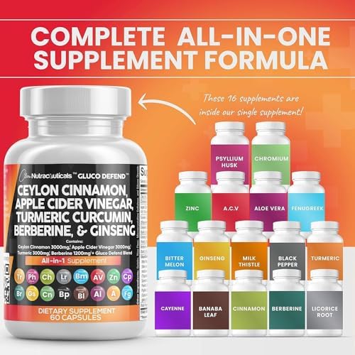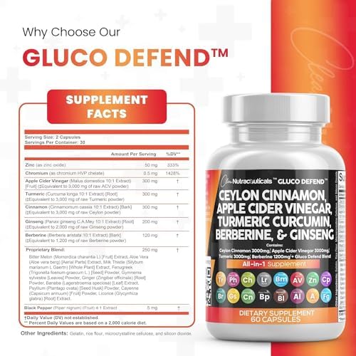 The Ultimate Ceylon True Cinnamon and Apple Cider Vinegar Supplements You’ve Been Looking For – Clean Nutra’s Gluco Defend provides 5 full-dose products in one, containing a full acv capsules with mother organic, cinnamon from ceylon, berberine complex, and korean red ginseng capsules in a convenient 2 capsule dosage! Stronger than typical ceylon cinnamon 2000mg, apple cider vinegar pills with the mother, turmeric gummies for adults, ginseng powder organic, and ceylon cinnamon capsules 1000mg.