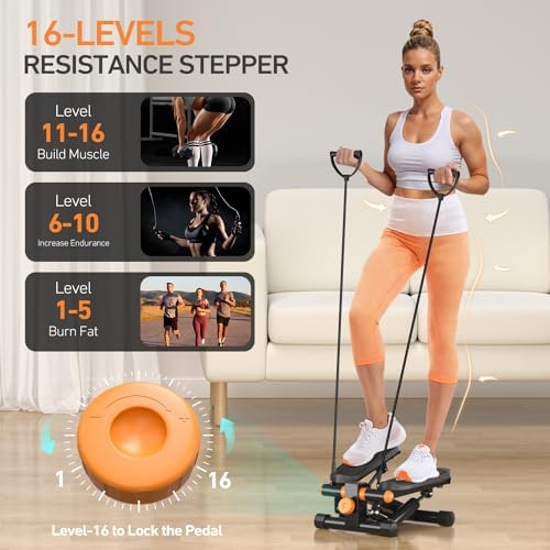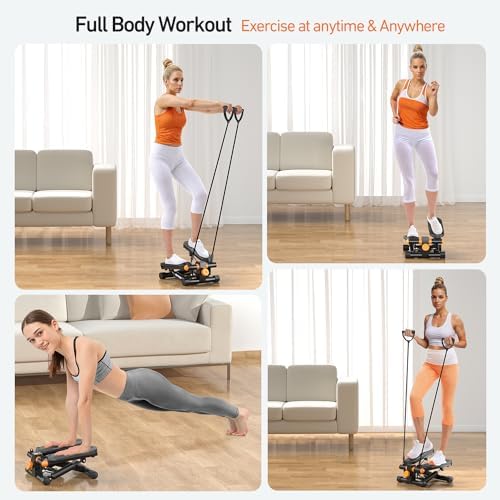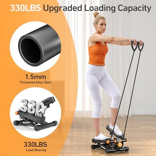 DAEYEGIM Steppers for Exercise, Stair Stepper with Resistance Bands, Mini Stepper with 300LBS Loading Capacity, Hydraulic Fitness Stepper with LCD Monitor