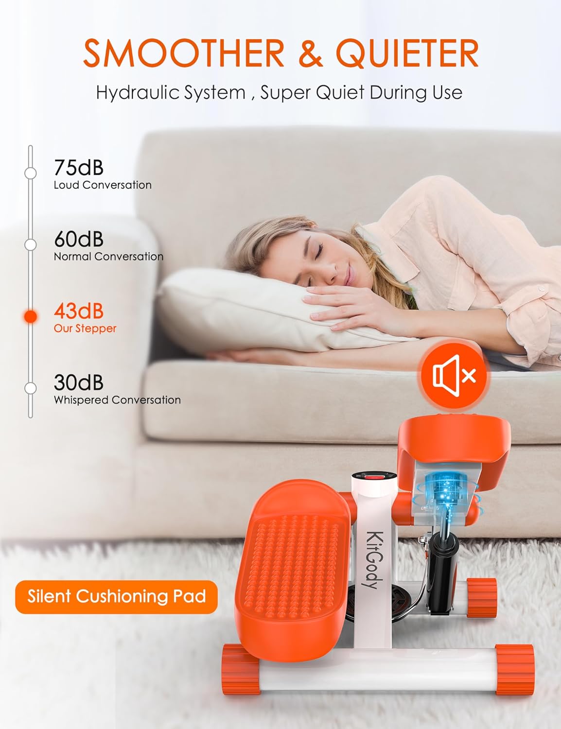 ⚙️【Dual Hydraulic Drive System】 KitGody stepper is built with high-quality 2MM thick steel and advanced hydraulic system which provides balance and can withstand a weight of 300+ lbs.