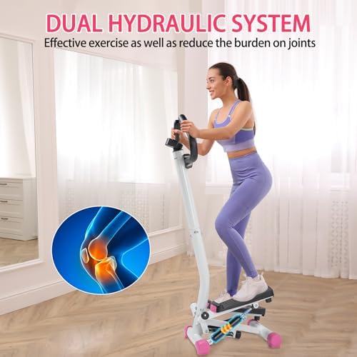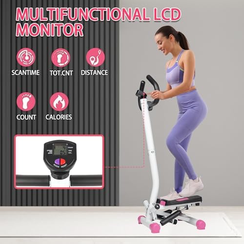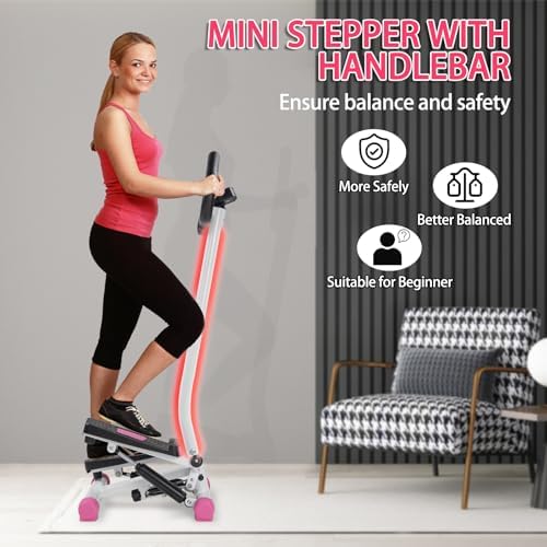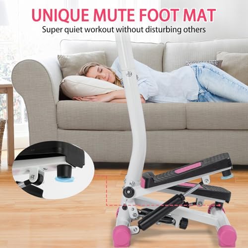 Ktaxon Steppers for Exercise, Mini Stepper with Handlebar, Twist Stepper with Unique Twist Movement, 300LBS Weight Capacity, Adjustable Step Height for Full Body Workout (Pink)