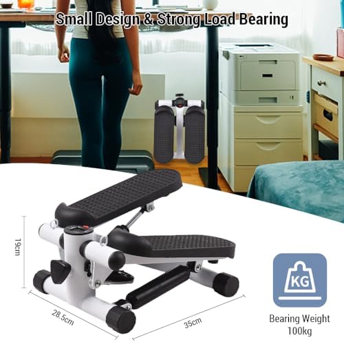 【Smart Display & Compact Design】The LCD display on mini stepper machine with resistance bands helps you keep track of total count, time, calories burned, steps/minute, and scan for you during your workout. Compact design (Size: 35×28.5x19cm/13.8×11.2×7.5in) is easy to carry and store, etting you know about your exercise effects anytime.