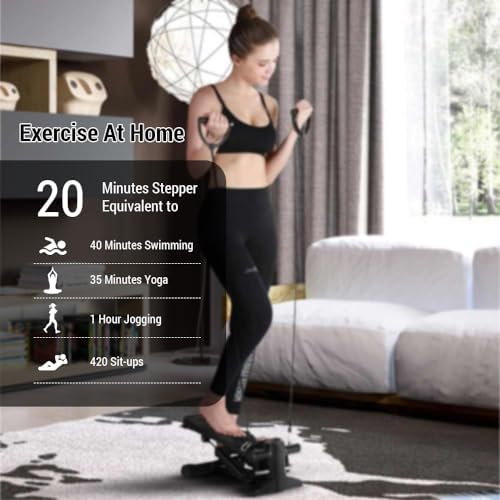 Lixada Stair Stepper for Exercises, Mini Stepper with Resistance Band & LCD Monitor, Gym Fitness Stair Stepping Exercise Equipment Stepper Machine for Home Workout, Legs Arm Full Body Training