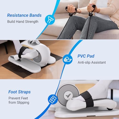 【Resistance Bands Exercise】This under-desk elliptical offers upper body resistance bands in addition to single elliptical exercises, allowing you to exercise your arms, shoulders, and chest. Escape the monotony of elliptical exercise for a comfortable home workout.