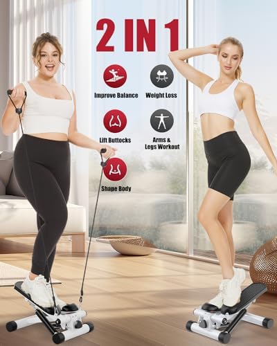 Mini Stair Steppers for Exercise at Home with Resistance Bands, Under Desk Stepper Machine 300LB Capacity