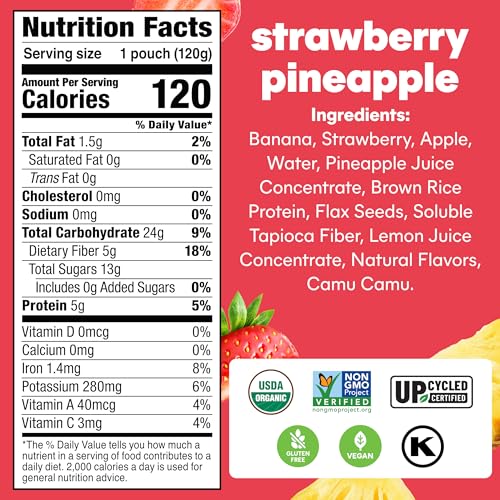 PLANT-BASED ORGANIC SNACKS: Our smoothies are made with a refreshing blend of strawberries, pineapples and bananas. Great on-the-go alternative to energy bars, dried fruit, trail mix, or jerky.
