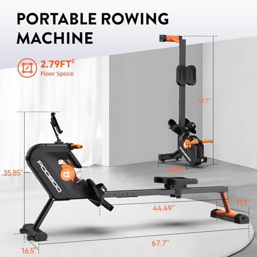 【Effortless Assembly & Space Saving】This pooboo rower machine is 85% pre-assembled. With the guidance of detailed instruction manual and assembly video, you can usually put it together in less than 25 minutes. The compact design makes it occupy only 2.79 ft², saving you 60% storage space. And the built-in transport wheels make it easy to move around. Great rowing machines for home use, friendly to Apartment, small house and office.