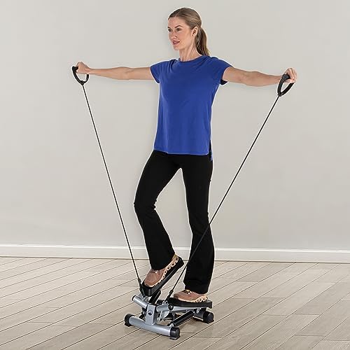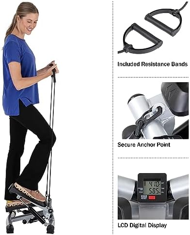 Stair Stepper – Portable Stair Climber Exercise Machine with LCD Monitor and Resistance Bands – Home Gym Workout Equipment by Wakeman,Silver