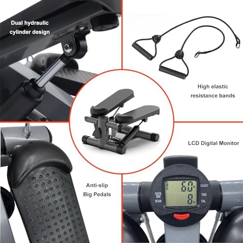 Steppers for Exercise at Home, Portable Mini Stair Stepper Machine for Workout, Hydraulic Twist Stepper with Resistance Bands, 300 lbs Weight Capacity
