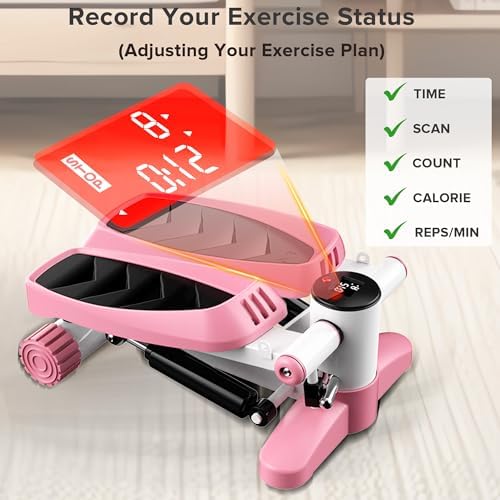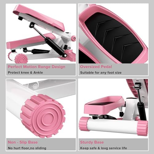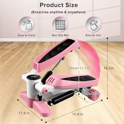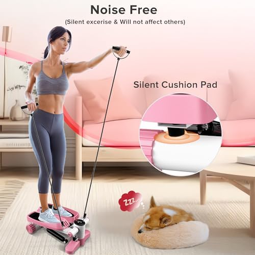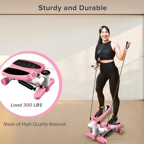 Steppers for Exercise, Mini Stair Stepper with Resistance Bands & Calories Count, 330lbs Weight Capacity Quiet Fitness Stepper for Home Office Workout, Legs Arm Full Body Training (Pink