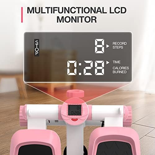 🏃【Stable Safe High Weight-bearing】Our step machine uses high-quality steel materials and hydraulic drive systems. Each stepper is tested several times to ensure safety and durability, with a maximum weight capacity of 330 Ibs. Dual hydraulic cylinder drive ensures stable, non-swaying step exercise. The built-in cushion springs and scientific up and down angle can protect your joints. This stair stepper is perfect for beginning exercisers and who need to lose weight and gain muscle.