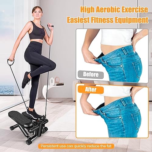 Steppers for Exercise, Stair Stepper with Resistance Bands, Mini Stepper with 300LBS Loading Capacity, Hydraulic Fitness Stepper with LCD Monitor