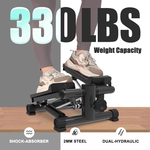 Steppers for Exercise, Stair Stepper with Resistance Bands, Mini Stepper with 330LBS Loading Capacity, Hydraulic Fitness Stepper with LCD Monitor (Black)