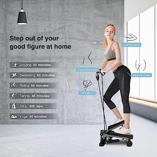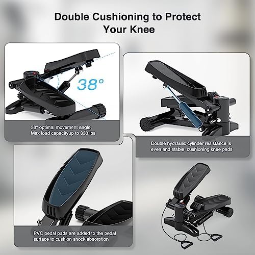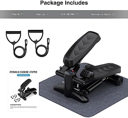 Tohoyard Steppers for Exercise, Mini Stepper with LCD Monitor, Quiet Fitness Stepper with Resistance Bands, Gym Stair Stepper for Home Workout, Legs Arm Full Body Training, Black#2148