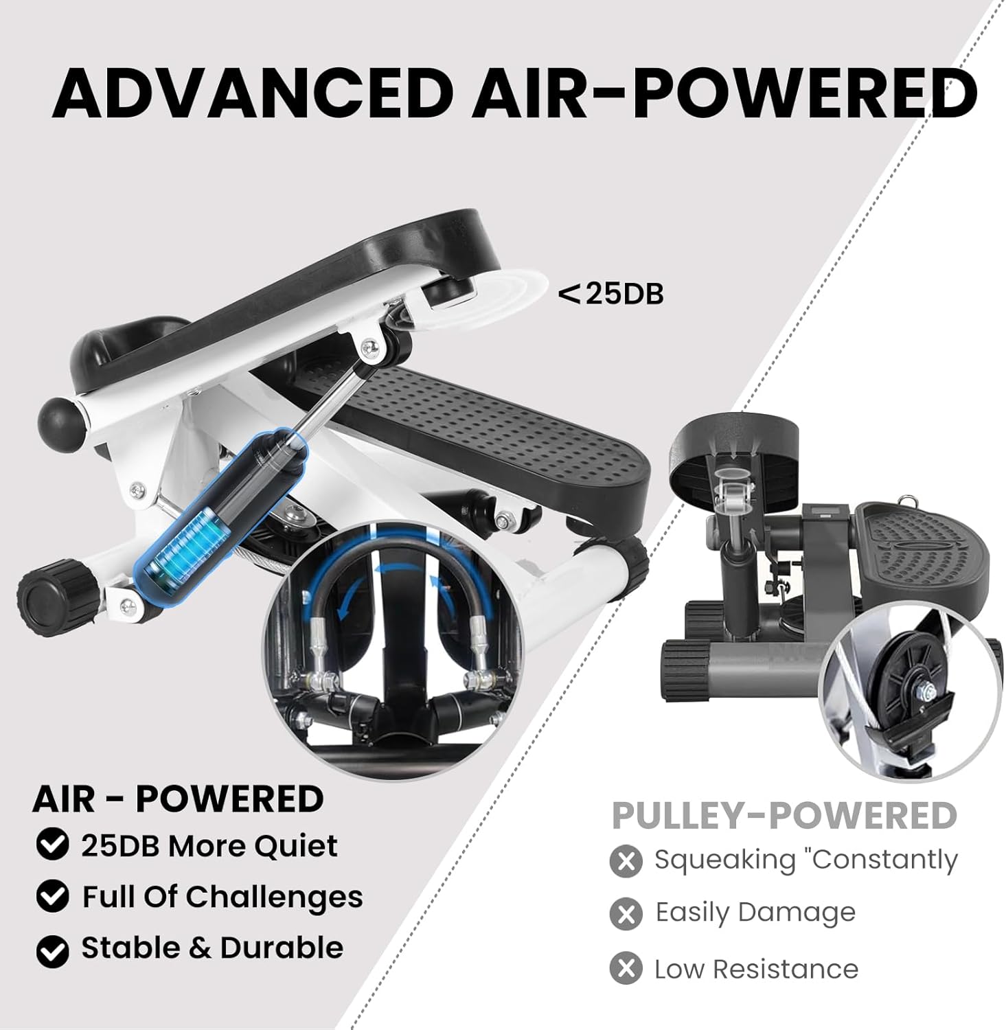 🌬️【Upgraded Air-Powered System】Equipped with an advanced air-powered system, this mini stepper is more labor-saving and much quieter compared with other mini steppers. This upgrade makes it always perform better than other home steppers.
